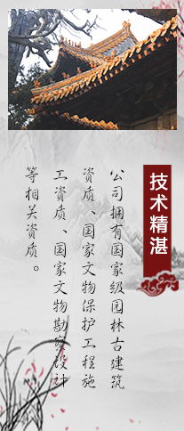 堅持質(zhì)量為先,信譽為重,管理為本,服務(wù)為誠的理念。本著對社會、對建設(shè)單位負(fù)責(zé)的原則,將工程質(zhì)量、安全生產(chǎn)放在工作的重要位置。我們堅持發(fā)展古建藝術(shù),弘揚民族文化,作為企業(yè)的經(jīng)營管理理念。曲阜古建筑義德古建始終秉承“科學(xué)管理,創(chuàng)精品工程,打造古建筑行業(yè)標(biāo)準(zhǔn)”的方針,追求更高質(zhì)量,為文物保護、傳統(tǒng)建筑事業(yè)做出貢獻(xiàn)。